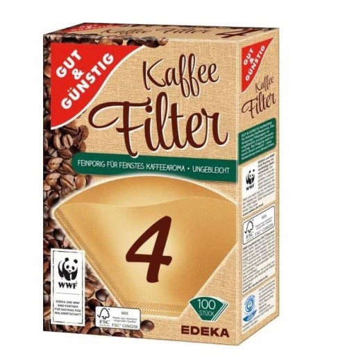 Filtry do kawy EDEKA Gut & Günstig dają gwarancję uzyskania najlepszego aromatu kawy. Zastosowana w filtrach bibuła ma drobne pory i nie jest bielona, dzięki czemu filtr jest ekologiczny a jego użycie nie wpływa na smak kawy. Wytłoczenie w filtrze uzyskuje się jedynie poprzez nadruk nie stosuje się klei ani innych środków wiążących.