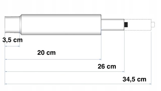 - Długość całego siłownika w najwyższym położeniu: 34,5 cm
