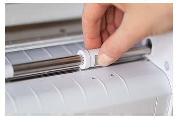 - wbudowany podajnik na folie, papiery samoprzylepne nawinięte na rolkę