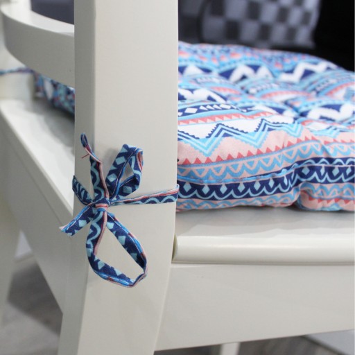 Poduszki mają wszyte długie troczki z dwóch stron aby nie zsuwały się z krzesła.