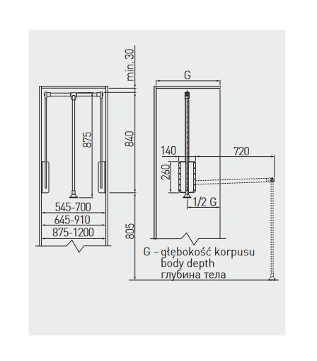 Pantograf do szafy z podnośnikiem olejowym 545-700mm stalowy czarny