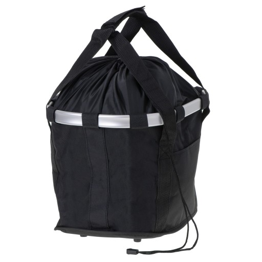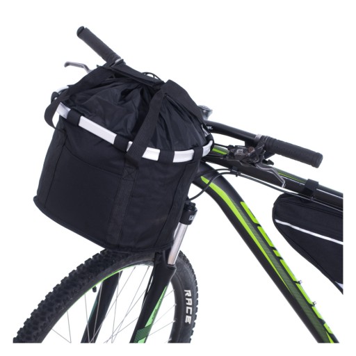 Koszyk jest wykonany jest z wytrzymałego materiału, a jego główna kieszeń jest ściągana za pomocą sznurka - tak aby przewożone rzeczy były zawsze bezpieczne w trakcie jazdy.