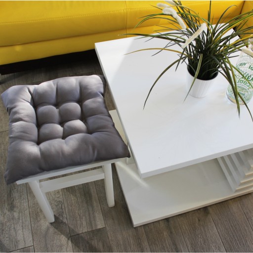 SZARA PODUSZKA NA KRZESŁO TABORET PIKOWANA Z TROCZAMI