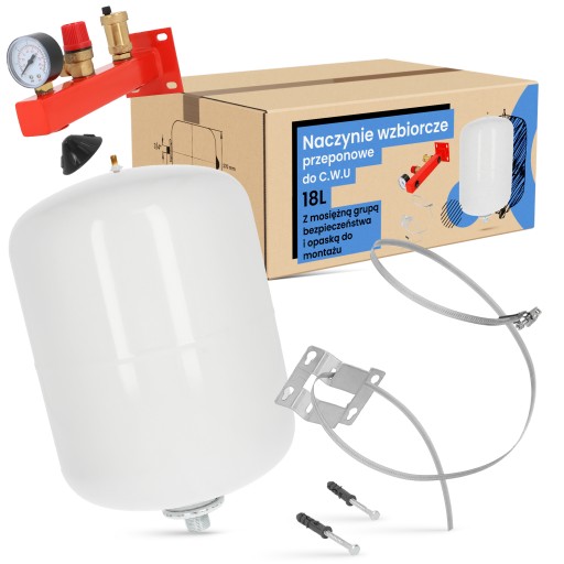 Naczynie wzbiorcze przeponowe do C.W.U. 18L z mosiężną grupą bezpieczeństwa 6 bar i opaską do montażu
