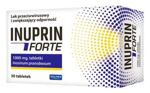 Inuprin Forte 1000 mg to lek wydawany bez recepty stosowany u osób o obniżonej odporności, w przypadku nawrotów infekcji górnych dróg oddechowych, oraz w leczeniu opryszczki występującej na wargach i skórze twarzy spowodowanej przez wirus opryszczki pospolitej (Herpes simplex).