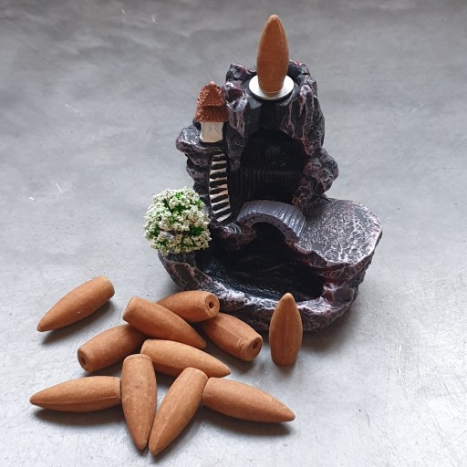 - Zbliż płomień do czubka stożka i przytrzymaj przez kilka chwil, aż kadzidło zacznie się tlić.
