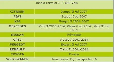 - PEUGEOT: Expert 2006-2016 (II, II facelift) L1: 4805 mm, H1: 1942 mm,Traveller od 2016 L1: 4600 mm, H1: 1900 mm