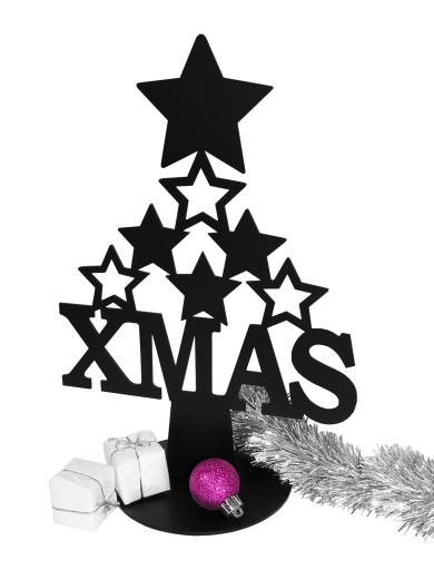 Dekoracyjna choinka wykonana z metalu malowana proszkowo na kolor czarny.