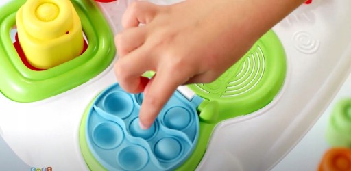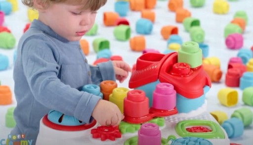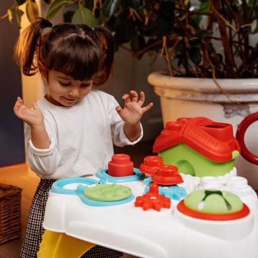 Zabawa przy stoliku to także świetny sposób, aby zachęcić dzieci do wstawania i ćwiczenia równowagi oraz rozwijania zdolności motorycznych podczas zabawy.
