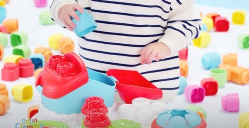 • Miejsca w kształcie klocków Clemmy, na których można budować wieże z klocków W zestawie znajduję się 10 miękkich i dużych klocków Clemmy, oraz młotek.