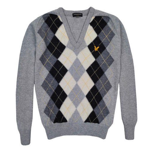 МУЖСКОЙ ДЖЕМПЕР LYLE & SCOTT ROMBY ВИНТАЖНЫЙ СЕРЫЙ ШЕРСТЯНОЙ ОРИГИНАЛ размер S
