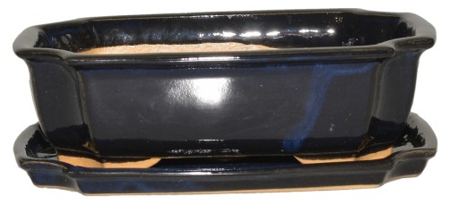 Doniczka ceramiczna z podstawką, prostokątna z zaokrąglonymi narożnikami, szkliwiona, doskonała na drzewko bonsai