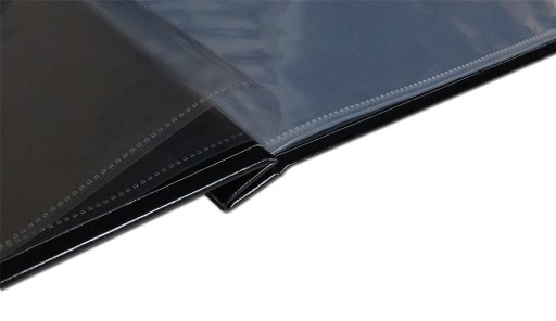 - Standardowo wpięte 10 kieszonek foliowych, dostosowanych do kart formatu A4.