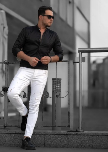 - elegancka, gładka koszula ze stójką
