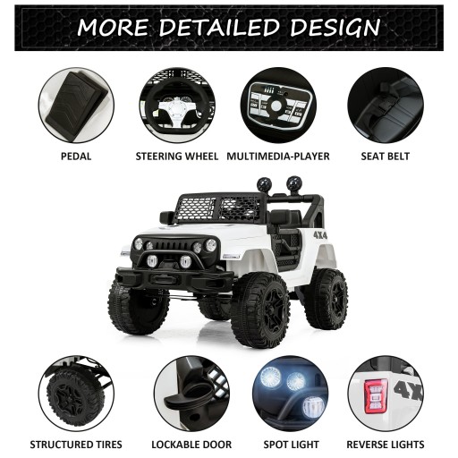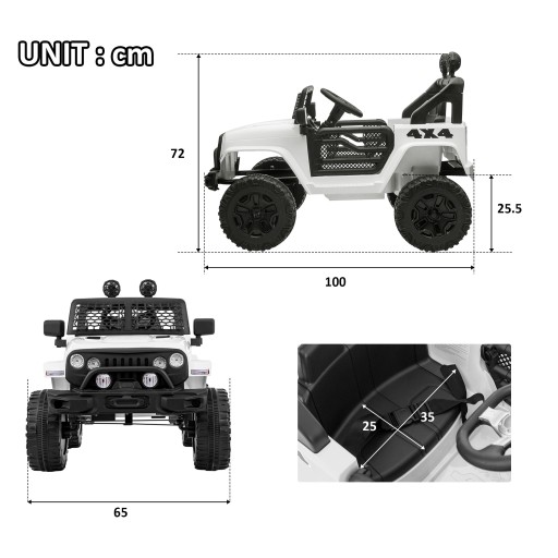 Czy Twoje dziecko często zazdrości dorosłym przyjemności z jazdy? Czy dzieci zawsze chcą jeździć własnym samochodem? Jeśli Twoje odpowiedzi są pozytywne, ten samochód elektryczny byłby wspaniałym rozwiązaniem. Dzięki wyglądowi przypominającemu jeepa ten samochód elektryczny może pomóc dzieciom bez wysiłku cieszyć się jazdą. Świecące reflektory LED, zamki w drzwiach, oświetlony kokpit i kratki okienne z przodu, a także różne konfiguracje rozrywki sprawiają, że ten elektryczny samochód jest wymarzonym samochodem dla Twoich dzieci. Również względy bezpieczeństwa przy projektowaniu tego elektrycznego samochodu są tak doskonałe. Pilot zdalnego sterowania i konstrukcja zorientowana na rodzica zapewniają spokój, że dzieci mogą jeździć tyle, ile chcą. Co ciekawe, ten samochód elektryczny może wytrzymać do 75 minut (rzeczywista żywotność zależy od terenu jazdy).
