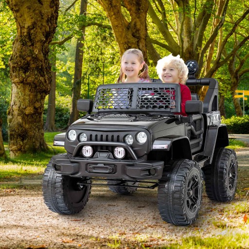 Elektryczny samochód dla dzieci, 2 foteliki dla dzieci z pilotem 2,4G, 2-biegowy samochód elektryczny z miękkim startem, klaksonem, przednie światło. Pojazd dziecięcy 3-5 km/h, 12 V dla dzieci od 37 do 95 miesięcy (czarny)