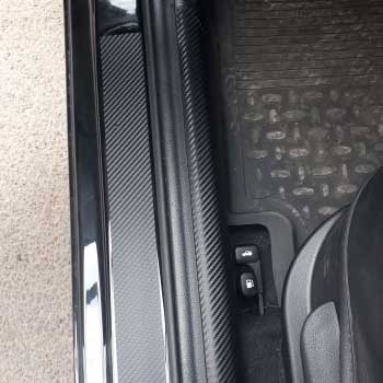 Folia ochronna na progi z połyskiem 5d o strukturze imitującym carbon prezentuje się niezwykle elegancko i wygląda jak fabryczna część auta.