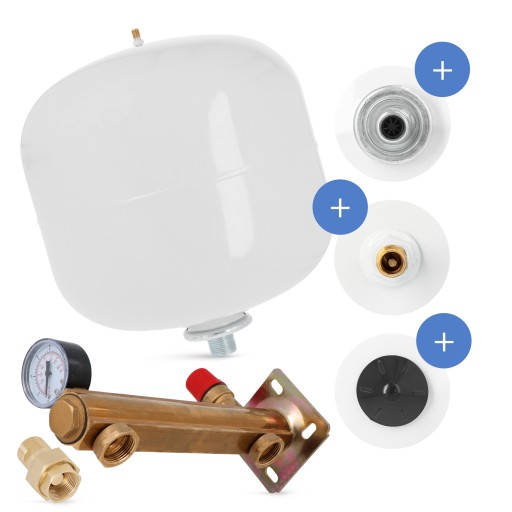 Produkt przeznaczony jest do instalacji ciepłej wody użytkowej w obiegach zamkniętych. Zestaw zawiera naczynie, grupę bezpieczeństwa oraz szybkozłącze. Dzięki temu łatwo podłączysz i zabezpieczysz element.
