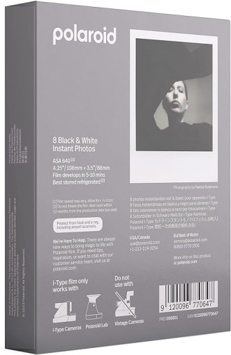 - Zaktualizowany klasyk: Klasyczny film powraca w nowej formule przeznaczonej wyłącznie dla aparatów i-Type, w oszałamiającej czerni i bieli. Wykorzystuje najnowszą chemię Polaroid, aby zapewnić bogatsze kolory, odcienie i kontrasty. Film i-Type nie jest kompatybilny ze starszymi aparatami Polaroid.