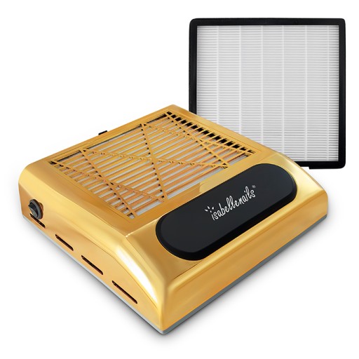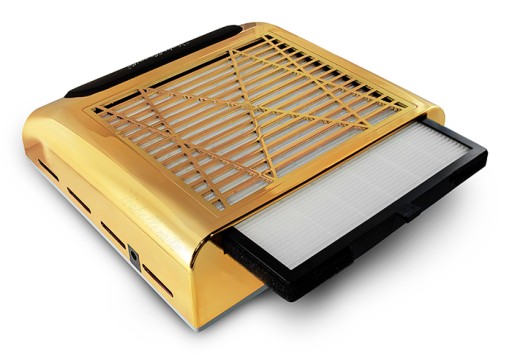 Innowacyjny, bezworkowy pochłaniacz do pyłu w kolorze złotym. Urządzenie zapewnia jeszcze lepszy komfort pracy, więc nie musisz martwić się o pył podczas wykonywania stylizacji paznokci. Pochłaniacz to obowiązkowe wyposażenie przy wykonywaniu maniciure.