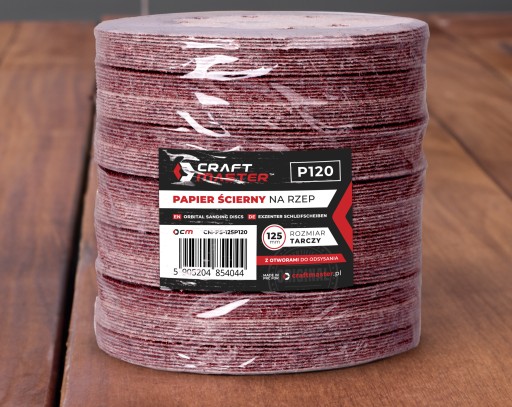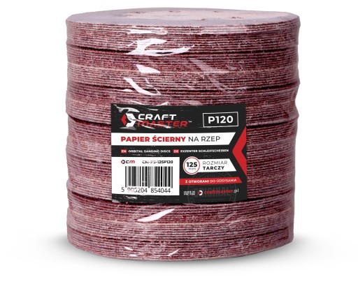 PAPIER ŚCIERNY NA RZEP 125mm P120 KRĄŻEK Z OTWORAMI SZLIFIERKI ZESTAW 10szt