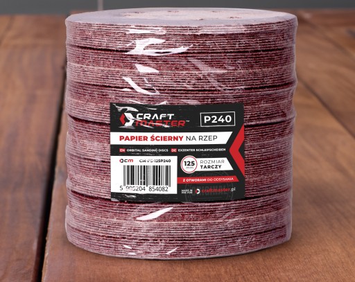 PAPIER ŚCIERNY NA RZEP 125mm P240 KRĄŻEK Z OTWORAMI SZLIFIERKI ZESTAW 10szt