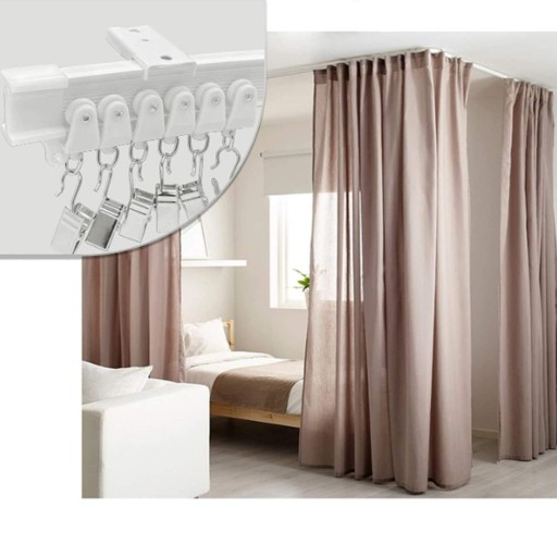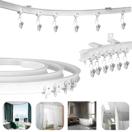 🏠WIELE ZASTOSOWAŃ - Karnisz sufitowy z klipsami wygląda świetnie w każdym otoczeniu, takim jak biuro/łazienka/salon itp. Zakrzywiony karnisz jest również idealny do dzielenia pokoju, obróbki okien wykuszowych, toru prysznicowego, kampera, przyczepy, kampera lub wszelkich ciasnych przestrzeni, których potrzebujesz, aby zmaksymalizować swoją przestrzeń i zapewnić natychmiastową prywatność.