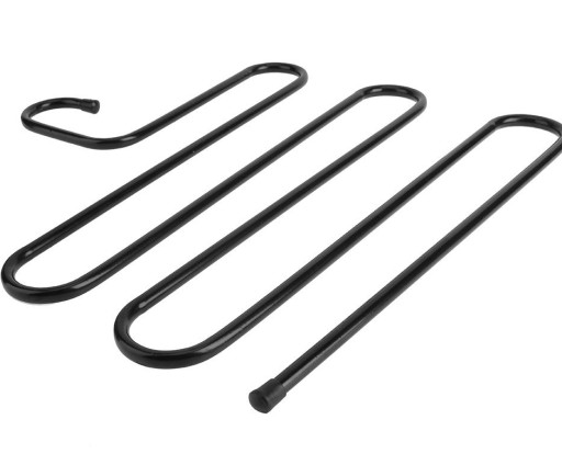 Solidny, stalowy wieszak na spodnie. Umożliwia zawieszenie do nawet 5 par spodni jednocześnie. Doskonały sposób na oszczędzenie miejsca w ciasnej szafie. Wykonanie z wytrzymałych materiałów (stal) gwarantuje długie i bezproblemowe użytkowanie.