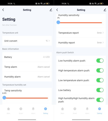 - Regulowany cykl raportu od temperatury/wilgotności/czas