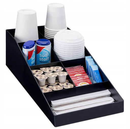 Przechowywanie akcesoriów – do barku kawowego itp. Cukier, mleko, serwetki, kapsułki – stacja do kawy, 7 przegródek, czarne
