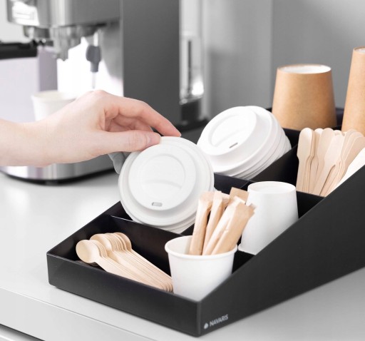 - Dobra organizacja: w tym praktycznym pojemniku na akcesoria do kawy możesz przechowywać wszystko, co jest ważne dla dobrej kawy: cukiernica, kubek, syrop, mieszadełka, serwetki, śmietany, a nawet kapsułki z kawą.