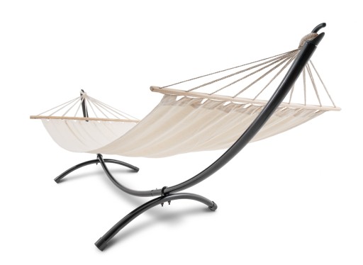 Mocna, stalowa rama stojaka zapewnia bezpieczeństwo użytkowania. Funkcja złożenia stojaka umożliwia wygodne przechowywanie. Maksymalne obciążenie hamaka wynosi 120 kg
