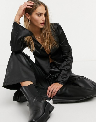 CZARNA BLUZKA DAMSKA SATYNOWA KLASYCZNA