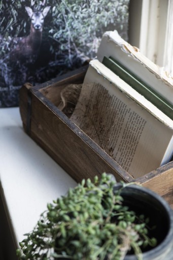 Skrzyneczka nada wnętrzu rustykalnego klimatu a drewno ociepli przestrzeń.