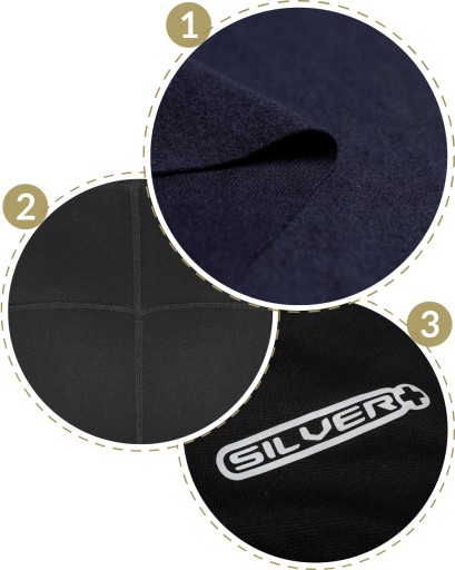 Odzież wykonanana jest z dzianiny wykończonej środkiem antybakteryjnym - SILVER PLUS (jony srebra). Dzianina posiada atest niemieckiej firmy Sanitizer. Po 20 praniach zabezpieczenie spiera się tylko o 3%.