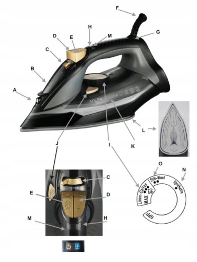 ▶Żelazko Adler to wielofunkcyjne żelazko parowe o licznych zaletach. Żelazko ma 5 funkcji: prasuje parowo w poziomie generując 45 gram pary na minutę, prasuje parowo w poziomie z funkcją uderzenia pary do 80 gram na minutę w celu wygładzenia szczególnie opornych zagnieceń, prasuje na sucho (bez użycia pary), prasuje w pionie (np. firanki, ubrania wiszące na wieszakach: marynarki, żakiety), spełnia funkcję spryskiwacza z jednorazowym wyrzutem wody 0,5 grama. Żelazko wyposażone jest w 4 systemy: automatyczne wyłączanie w razie pozostawienia urządzenia bez nadzoru, system blokady kapania gdy temperatura płyty prasującej nie osiągnęła jeszcze optymalnej temperatury urządzenie zahamuje wypływ kropel wody zamiast pary, system anty-wapienny ograniczający osadzanie się minerałów z wody w urządzeniu, system samooczyszczenia. Dodatkowe zalety to duży zbiornik pozwalający na rzadsze dolewanie wody podczas prasowania. Spiczasta końcówka stopy ułatwia dostęp do trudno dostępnych miejsc np. wokół guzików, prasowanie plis, etc. Stopa ceramiczna zwiększa poślizg – gładkie sunięcie po tkaninie. Przewód zasilający 1,50m. Funkcja automatycznego wyłączenia odcina zasilanie żelazka po pozostawieniu go w bezruchu w pozycji pionowej po 8 minutach, w pozycji poziomej po 30 sekundach. Urządzenie sygnalizuje uruchomienie funkcji automatycznego wyłączania 6 krotnym sygnałem dźwiękowym.