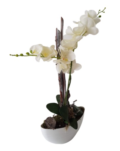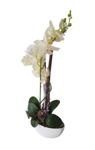 Stroik składa się z wysokiej jakości sztucznych storczyków, które wyglądają jak żywe!