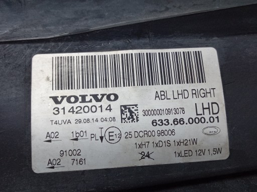 Opis: oryginał, bixenon skrętny, uszkodzenia widoczne na zdjęciach, uszkodzony klosz, brak przetwornicy i modułu, z przeznaczeniem na części lub do naprawy bez możliwości zwrotu, -jakość C && S80 II V70 LIFT REFLEKTOR PRAWY XENON EU 31420014