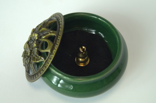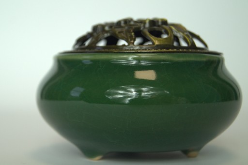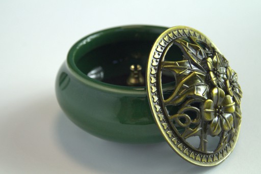 Керамическая курильница с ажурной зеленой крышкой + ручка