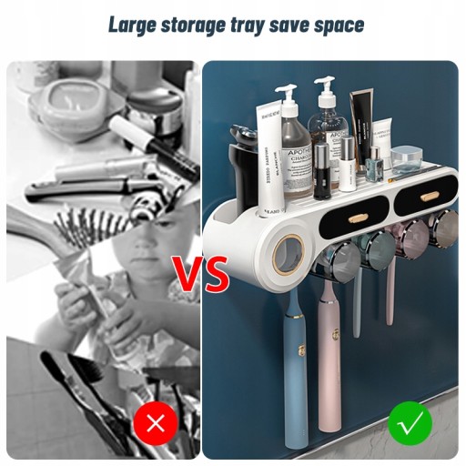 Wszechstronny schowek na szuflady. Możesz umieścić szczoteczki do zębów, szczoteczki elektryczne, aromaterapię, kosmetyki, maszynki do golenia itp.