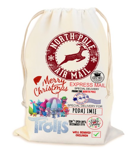 PERSONALIZOWANY WOREK Z IMIENIEM WYKONANY Z BAWEŁNY ORGANICZNEJ O GRAMATURZE 200 g/m2 ŚCIĄGANY Z DWÓCH STRON BAWEŁNIANYM SZNURKIEM. SUPER ROZWIĄZANIE NA PAKOWANIE ŚWIĄTECZNYCH PREZNTÓW POD CHOINKĘ, SZCZEGÓLNIE DLA DZIECI.