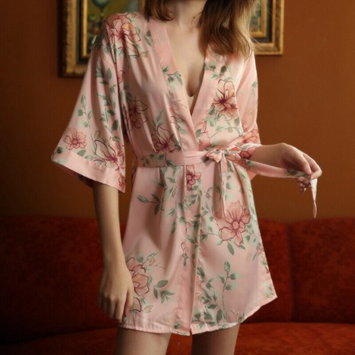 КОМПЛЕКТ ЖЕНСКИЙ АТЛАСНОЕ НОЧНОЕ ОДЕЖДА КРУЖЕВНЫЕ ШОРТЫ БАННЫЙ ХАЛАТ
