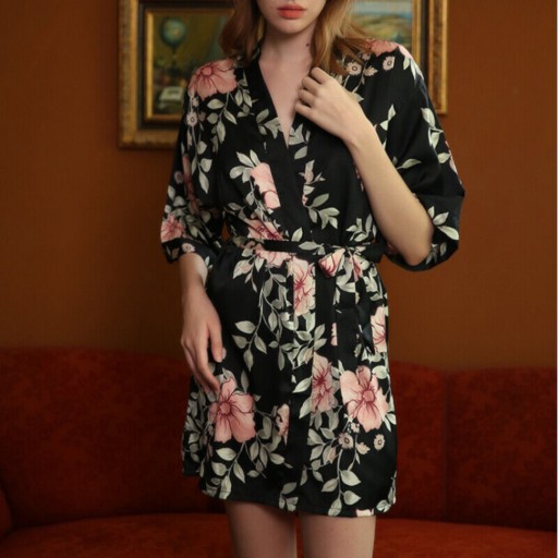 ❤️ Prezentujemy stylowy zestaw piżamowy: koszulka z krótkimi szortami plus szlafrok z motywem kwiatowym.