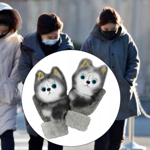 Kobieta Kreskówka Zimowe Ciepłe Rękawiczki Pełne Rękawiczki Dzianiny Szary Wilk