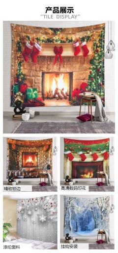 Рождественский камин, гобелен, фон, украшение, гобелен, снежинка, лесной фон