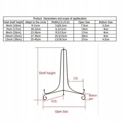 10 cali-wysokość: 25 cm/9.84 cala; Średnica talerza: 27-34 cm/10.63-13.39 cala; Otwarty: 10.5 cm/4.13 cala; DxS: 20x15 cm/ 7.87x5.91 cala