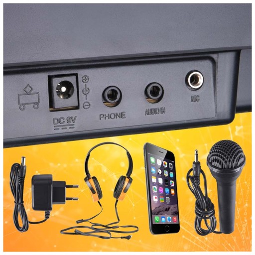 Jeśli nasze dzieci są muzykalne, lubią grać i śpiewać, warto postawić na zestaw, w którym mamy keyboard z mikrofonem. Dzięki takiemu rozwiązaniu do instrumentu w każdej chwili można podłączyć mikrofon, zaaranżować ciekawy występ i sprawić, by nasze dzieci poczuły się jak prawdziwe gwiazdy! Dobrym rozwiązaniem w MQ 6136L jest też wbudowane wejście audio umożliwiające podłączenie do instrumentu zewnętrznego źródła dźwięku i organizowanie np. zabaw karaoke, a także złącze słuchawkowe, które pozwala dzieciom na cichą zabawę z instrumentem.