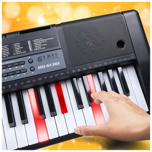 Keyboard MQ 6136L to idealny instrument do nauki gry oraz zabawy! Posiada 61 klawiszy. Bogaty bank tonów, podkładów rytmicznych oraz utworów demonstracyjnych sprawia, że dzieci poznają brzmienia różnych instrumentów, rytmów i stylów muzycznych z całego świata. Dodatkowo po wybraniu brzmienia perkusji do klawiszy przypisane zostają różne instrumenty perkusyjne umożliwiające tworzenie i programowanie rytmu samemu. Wszystko to sprawia, że czas spędzony z MQ 6136L to po prostu świetna zabawa!