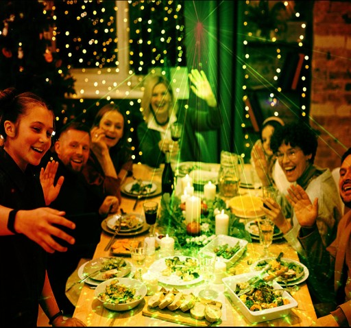 【Stworzyć dobrą atmosferę】 pozwól poczuć romans, sen, zaskoczenie i. Zorza polarna w świetle laser czerwony/zielony i światło tła LED RGB. Stworzyć dobrą atmosferę na rodzinne imprezy wakacyjne ~