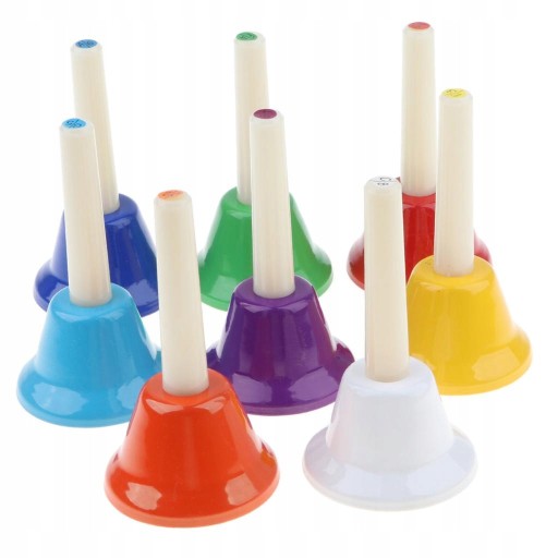 8 sztuk wielokolorowych dzwonków ręcznych z 8 różnymi melodiami